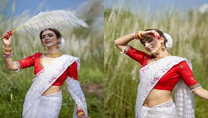 তিনি আরও লেখেন, শরতের কাশফুল আর নিজের নতুন সাজ, সবকিছুতেই কেমন যেন একটা স্নিগ্ধতা! আশা করি, সবার পুজো এ রকম সুন্দর কাটবে।
